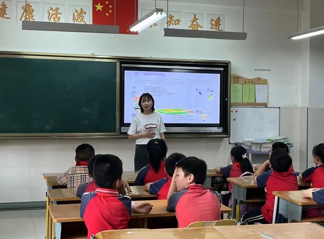 张依芳以《美丽中国是我的家》为主题,通过播放《美丽中国》自然风光的视频,使学生在领略祖国大好河山的过程中燃起对祖国的热爱之情与民族自信。在学习国徽、国旗、国歌的环节中,同学们认识到爱国绝不能停留在口号上,而是要把自己的理想同祖国的前途、把自己的命运同民族命运紧密联系在一起,奉献青春,绽放光彩。
