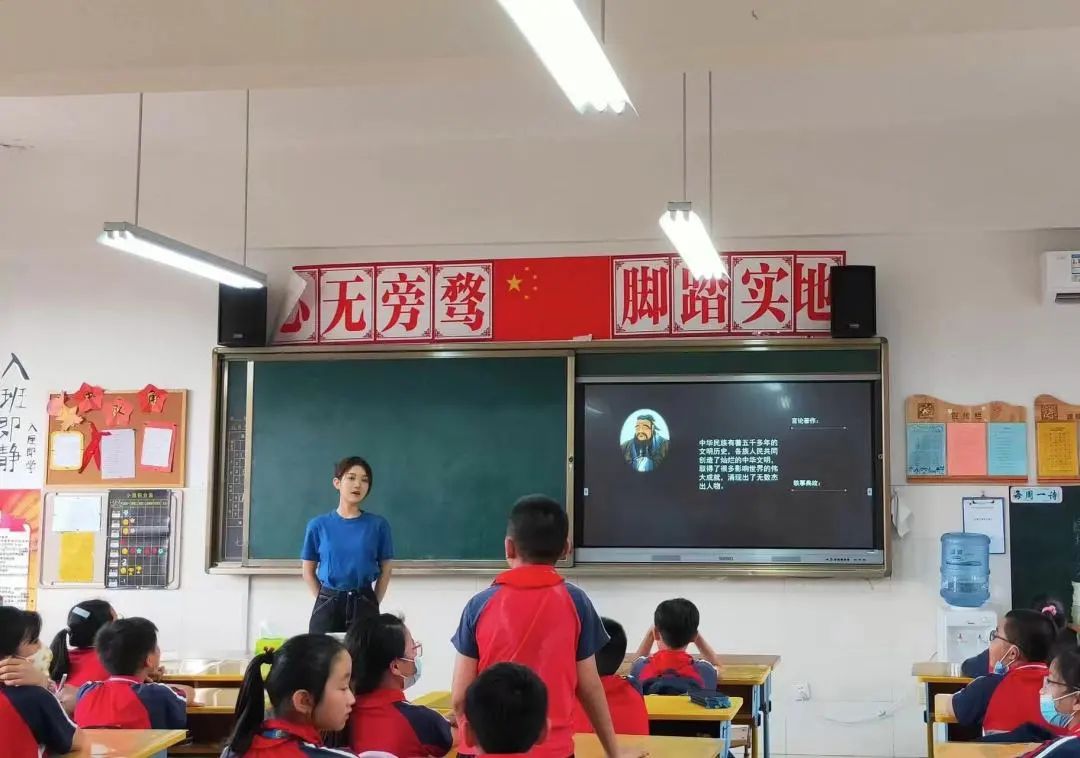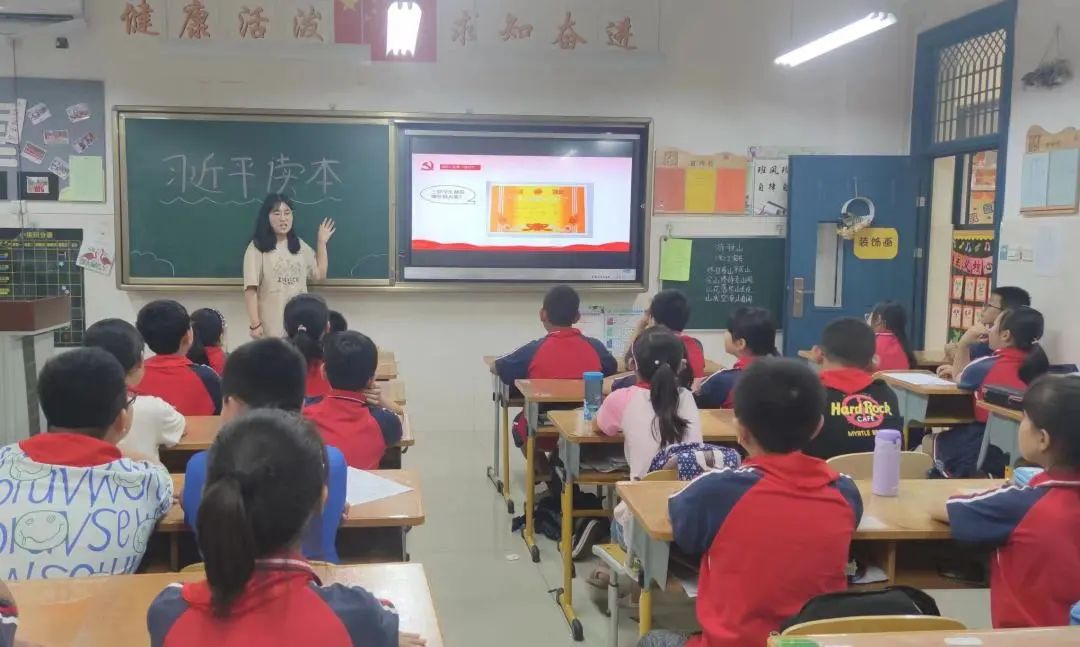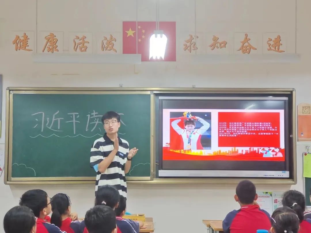惠靖童通过播放习近平总书记走入校园与同学们亲切交谈,带领同学们明白习近平总书记对于青少年的殷切期望,让他们牢记自己的任务是好好学习、热爱祖国、锤炼品格,做一名合格的社会主义事业接班人。