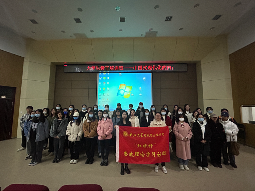 杨靖垭同学以《中国式现代化的内在含蕴》为题,向大家介绍了中国式现代化的特色、本质和原则,对比了中国式现代化和西方式现代化的异同,深化了同学们对中国式现代化新道路的认识,激励广大学子用奋斗为青春代言,用拼搏为谱写中国式现代化新道路新篇章贡献力量!
