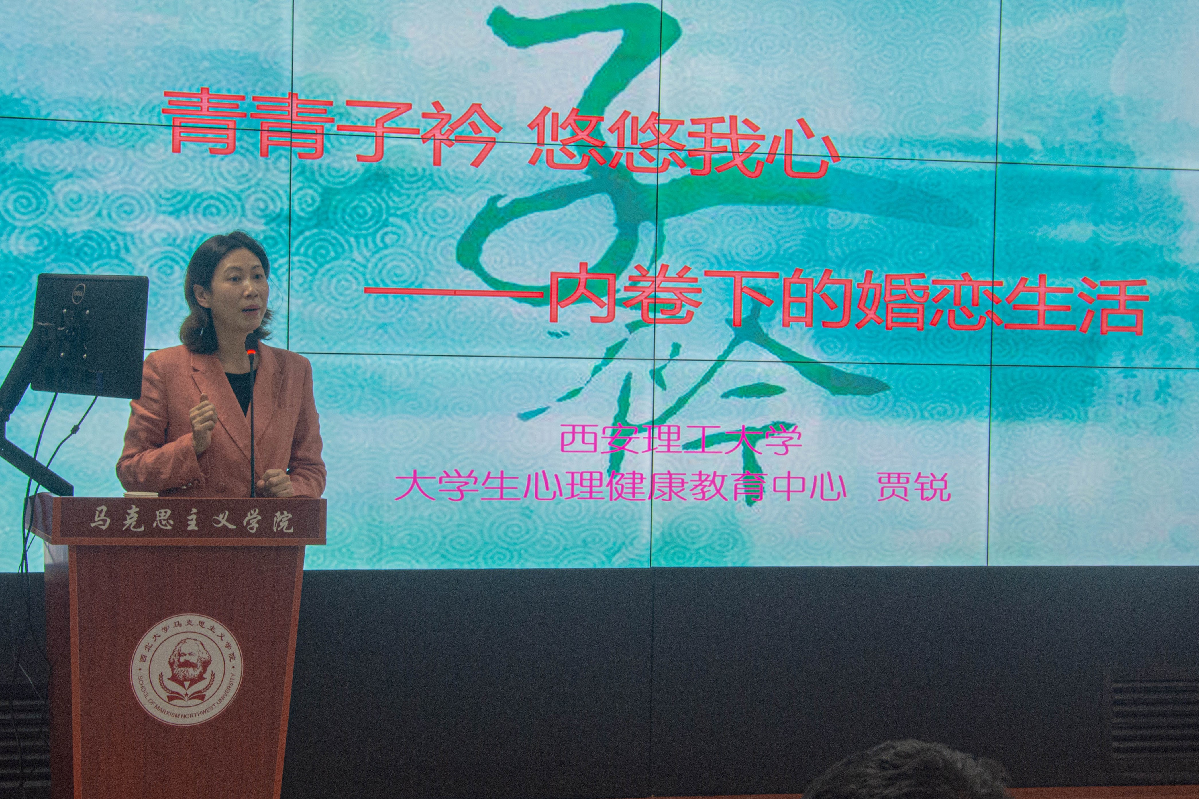 4月26号下午,由我院与外国语学院联合主办的《青青子襟悠悠我心——大学生爱与性初探》主题讲座在西学楼1104报告厅开讲,主讲人为西安理工大学心理健康教育中心主任贾睿老师。外国语学院党委副书记刘建波、心理专干王坤,我院党委副书记邵平、心理专干刘娟出席讲座,讲座由我院党委副书记邵平主持。